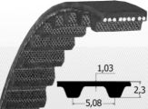 Ремни с шагом в INE изготовлены из неопрена/резины, вставка изготовлена из полиэстера. Шаг и ширина определяются в укусе. В дополнение к очень благоприятной цене, он также имеет недостаток, что эти ремни не могут передавать высокие силы. Профиль зубов является трапециевидным.